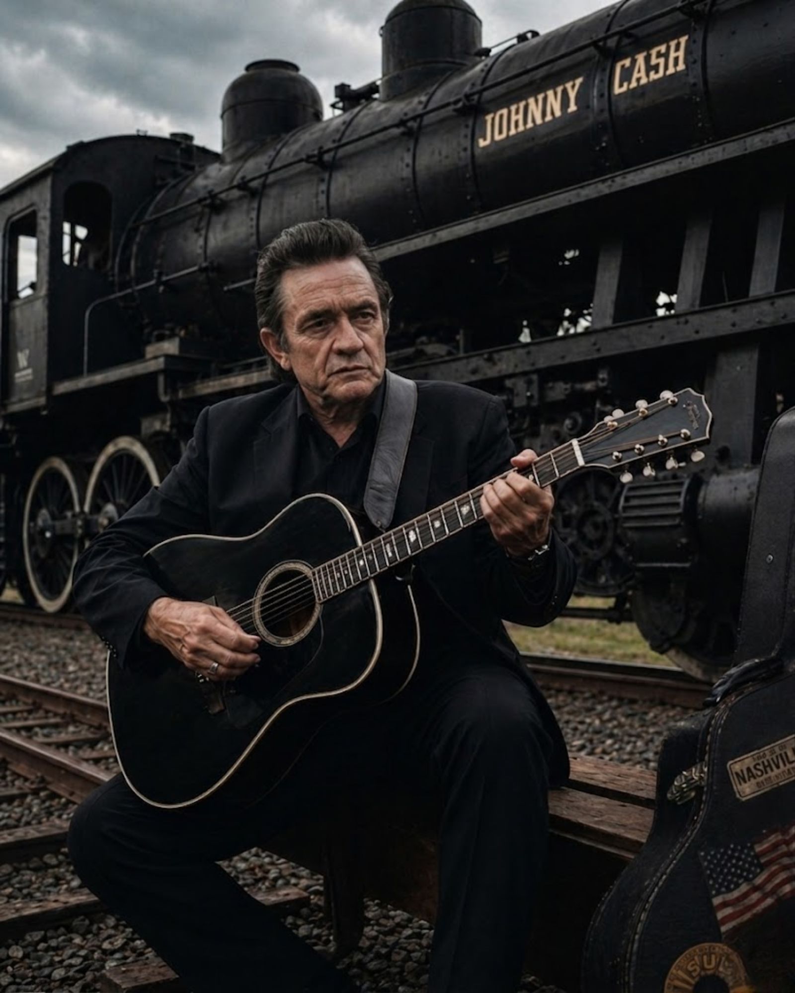 And decades later, after millions of records, endless highways, prison performances, gospel songs, heartbreak songs, redemption songs, and one of the most recognizable voices in American music, Johnny Cash came back to the same image one more time: a train.