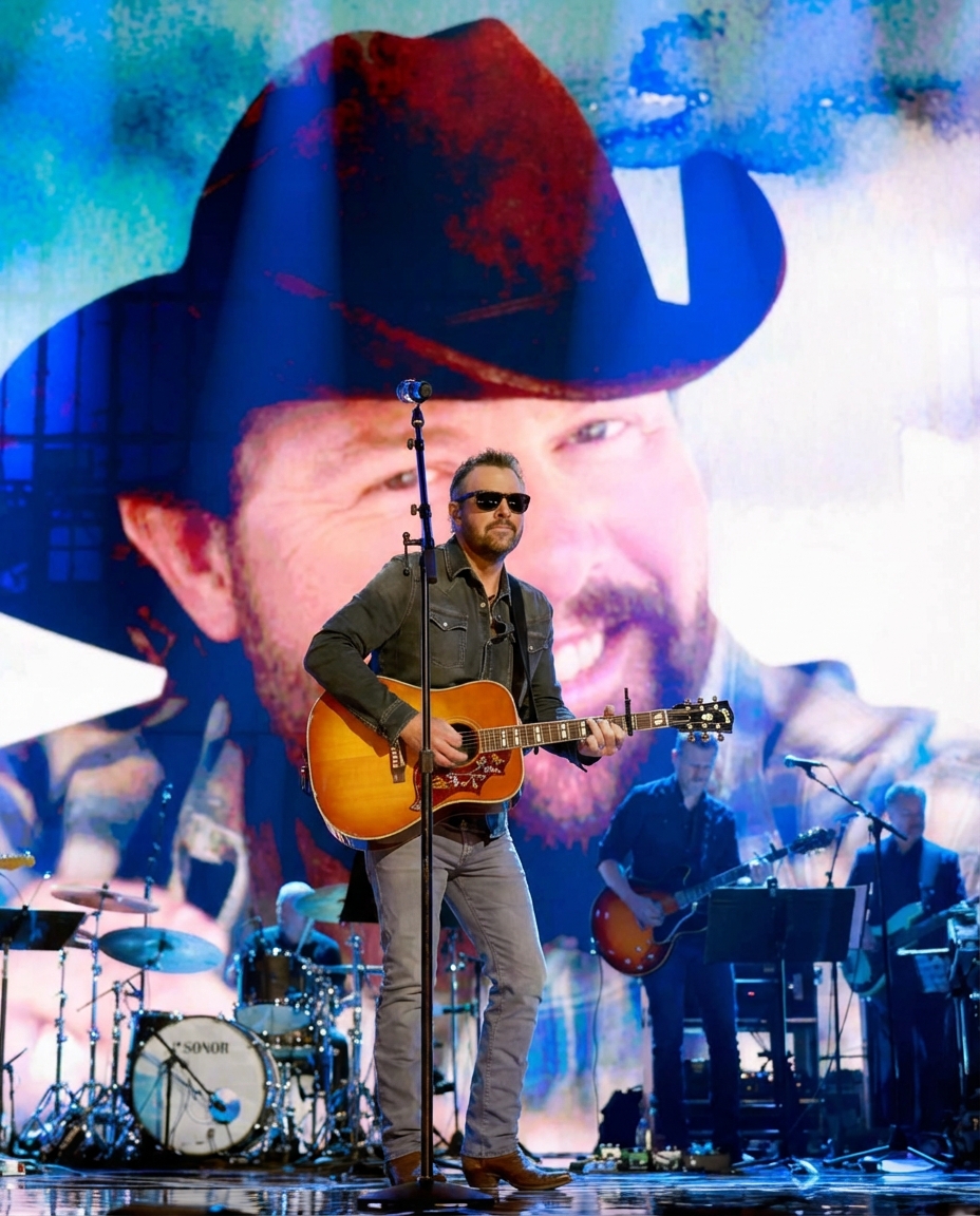 There’s a specific kind of quiet that happens when a crowd stops being an audience and becomes a room full of people. In that Omaha arena, you could almost hear the weight of names being carried in hearts. Toby Keith wasn’t there to wave or smile or take a bow. But he was present anyway—in the way Eric Church stood still, in the way his voice tightened on certain words, in the way the band seemed to play like they were trying not to disturb something fragile.