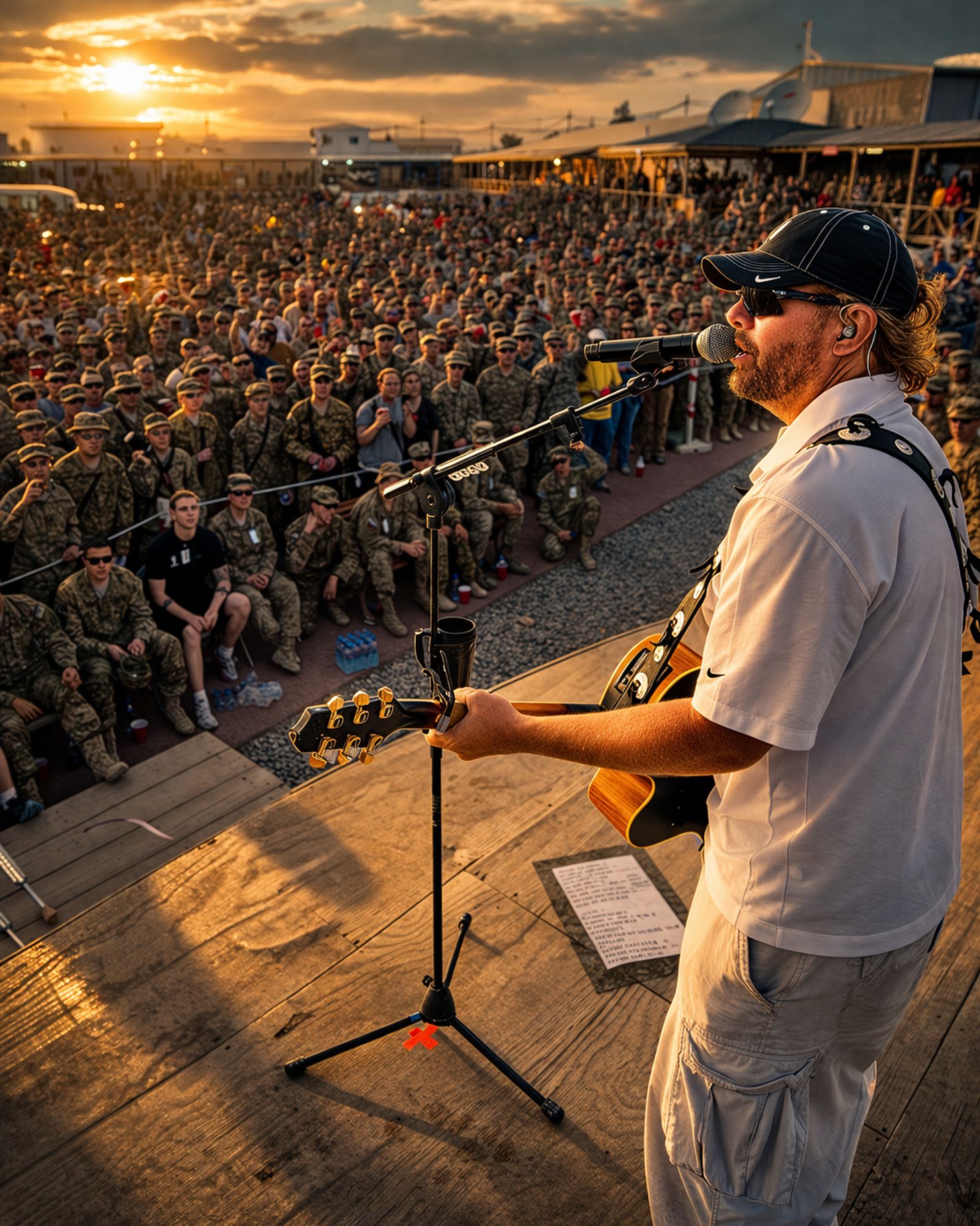 The bases were rough. Some of the soldiers lived in tents. Others had no running water. The heat was brutal during the day, and the nights could turn bitterly cold. Yet everywhere Toby Keith went, the reaction was the same. Soldiers who had not smiled in weeks suddenly looked like kids at a hometown fair.