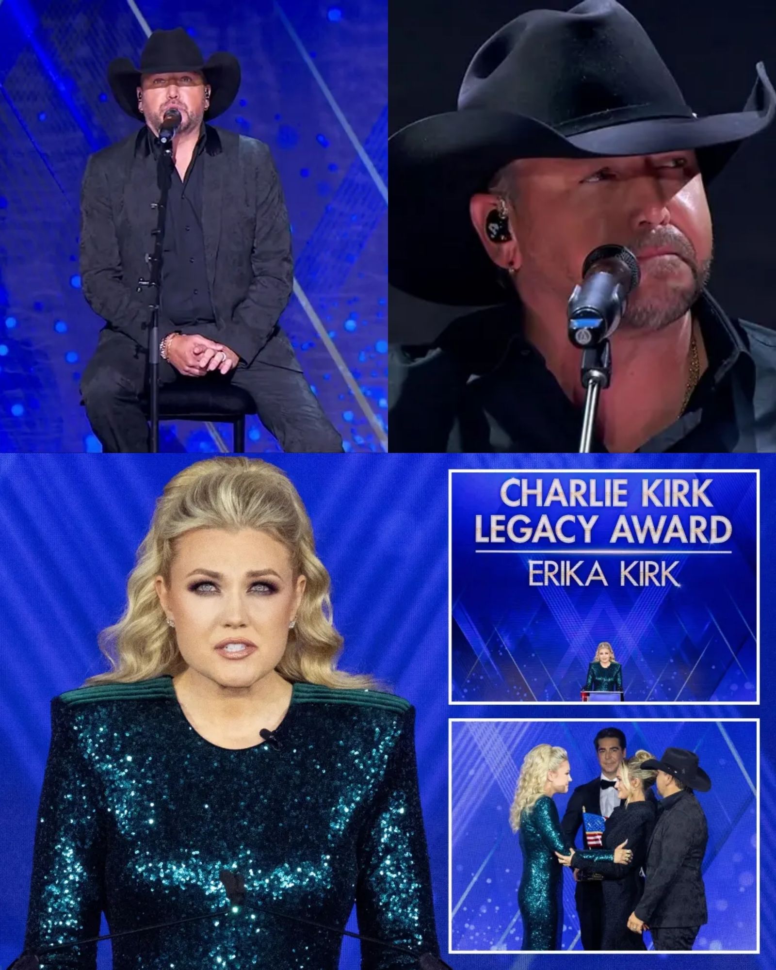 Erika accepted the award with quiet strength, honoring a man whose voice had been taken too soon. And as Jason stood beside her, it was clear why he belonged on that stage that night. He wasn’t there to stir noise. He was there to steady it.
