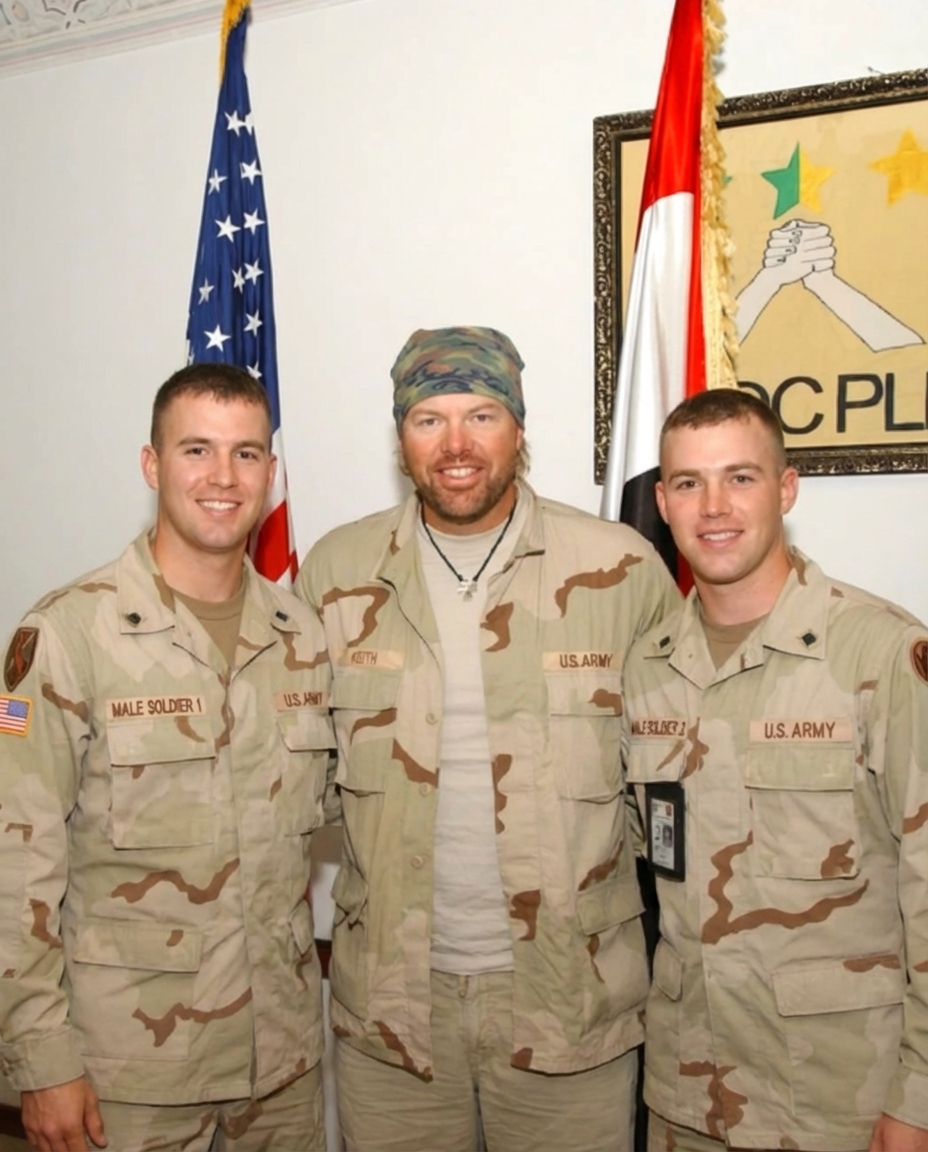 During one of Toby Keith’s overseas tours performing for American troops, something small happened that stayed with him for the rest of his life. There were no cameras nearby and no reporters waiting for a headline. It was simply a moment between two people who understood the meaning of service in very different ways.